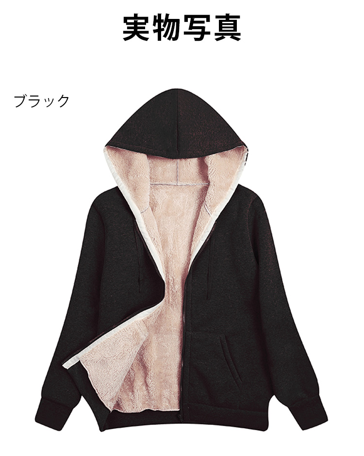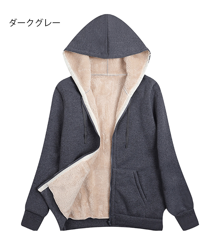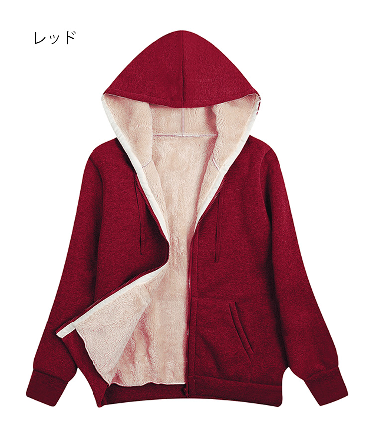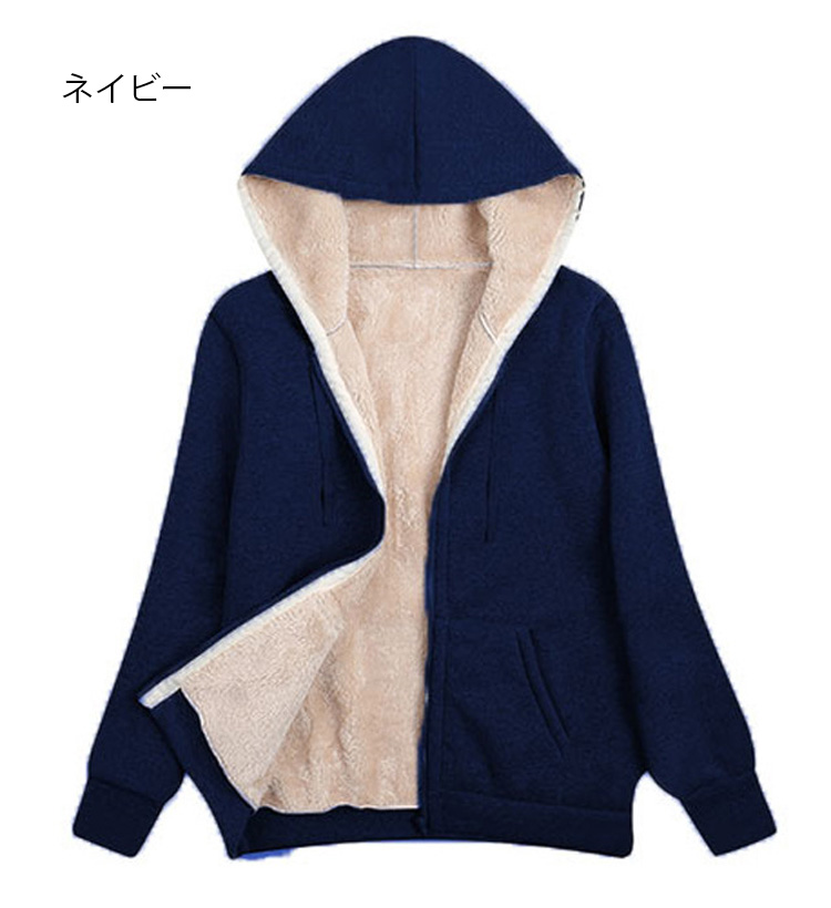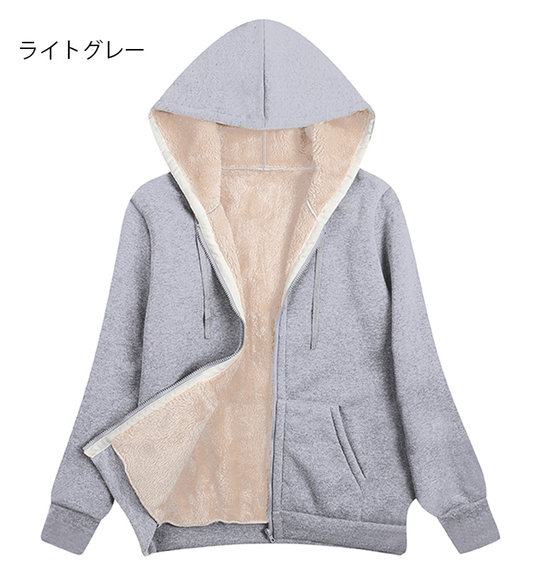 男女兼用の裏ボアジップパーカー